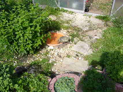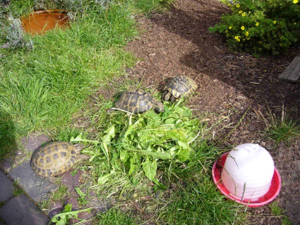 Hier 3 meiner Schildkröten beim "Grasen" im Gehege.